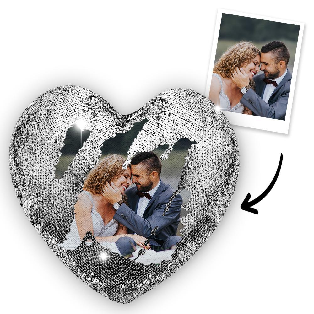 Personnalisé Amour de coeur Photo Magie Oreiller de Paillettes