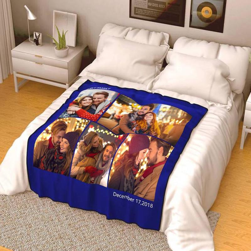 Cadeaux de noël Couverture Personnalisée en Photo en Molleton avec Gravure - 5 Photos