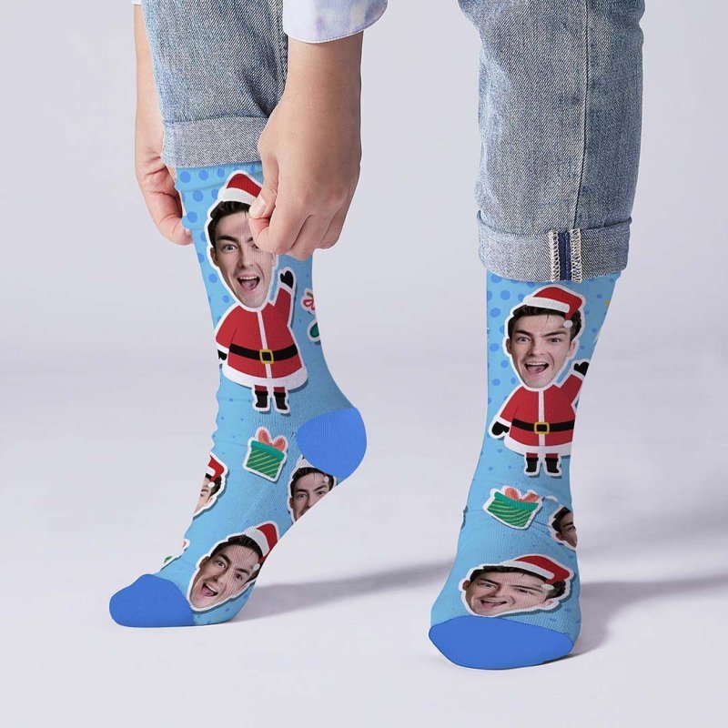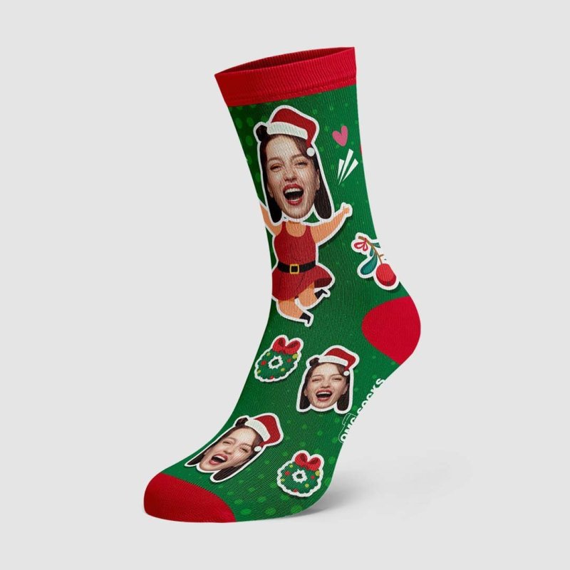 Chaussettes De Noël Personnalisées Avec Visage Sur Le Corps De La Femme Du Père Noël
