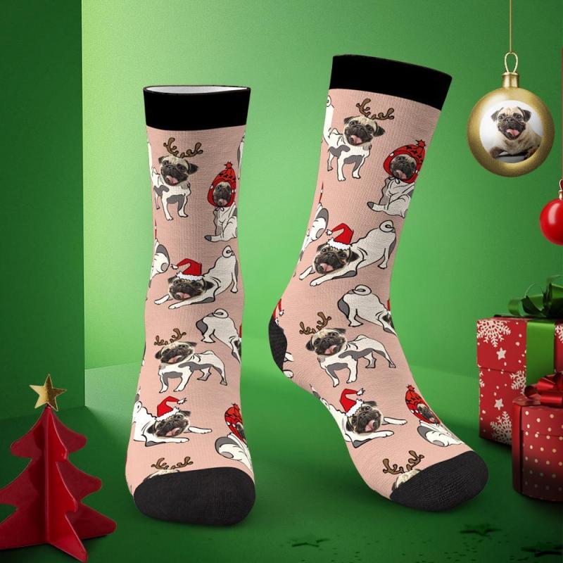Cadeau de Noël Chaussettes personnalisées pour animaux de compagnie - Bonnet de Noel et Elk
