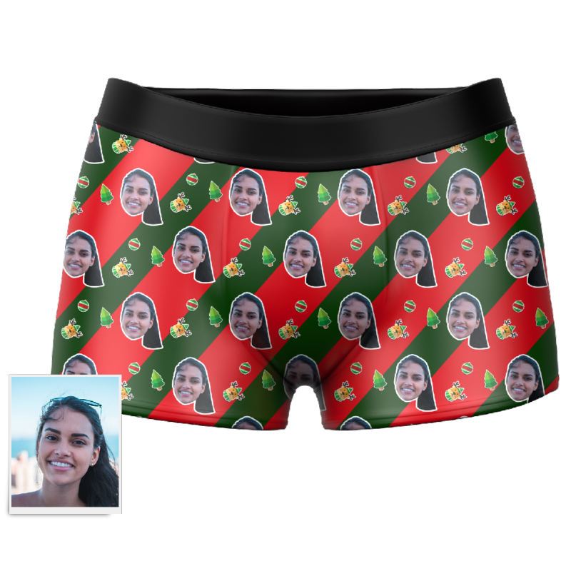Cadeau Noël Boxer Caleçon Visage Personnalisé Rayure
