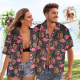 Couple De Visage Personnalisé Correspondant À Des Chemises Hawaïennes Flamingo Et Monstera Leaves Anniversaire de mariage