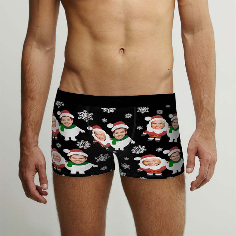 Boxers Personnalisés Pour Hommes, Slips De NoëlPersonnalisés Avec Photo Du Père NoëlEt Du Bonhomme De Neige