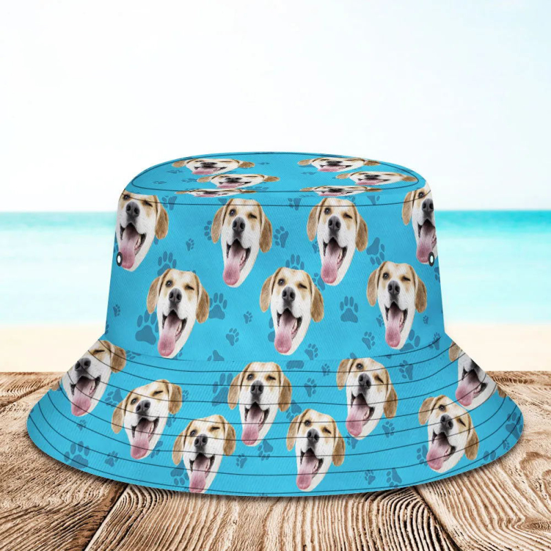 Chapeau seau personnalisé unisexe visage seau chapeau personnaliser à large bord casquette d'été en plein air randonnée plage sports chapeaux cadeau pour amoureux-chien motif seau chapeau