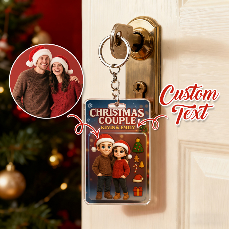 Illuminez votre Noël avec des sourires ! 🙏 Notre porte-clés photo de Noël personnalisé transforme votre photo préférée et un texte personnalisé en un souvenir festif unique. Parfait pour les couples, les familles ou les amis : un petit cadeau plein de chaleur. Fabriqué en acrylique transparent avec un fond de Noël chaleureux, il capture la magie de vos souvenirs dans les moindres détails. 🙏 Ajoutez votre propre texte (noms, année ou vœux de Noël). Parfait pour Noël, les anniversaires ou les cadeaux d'amitié