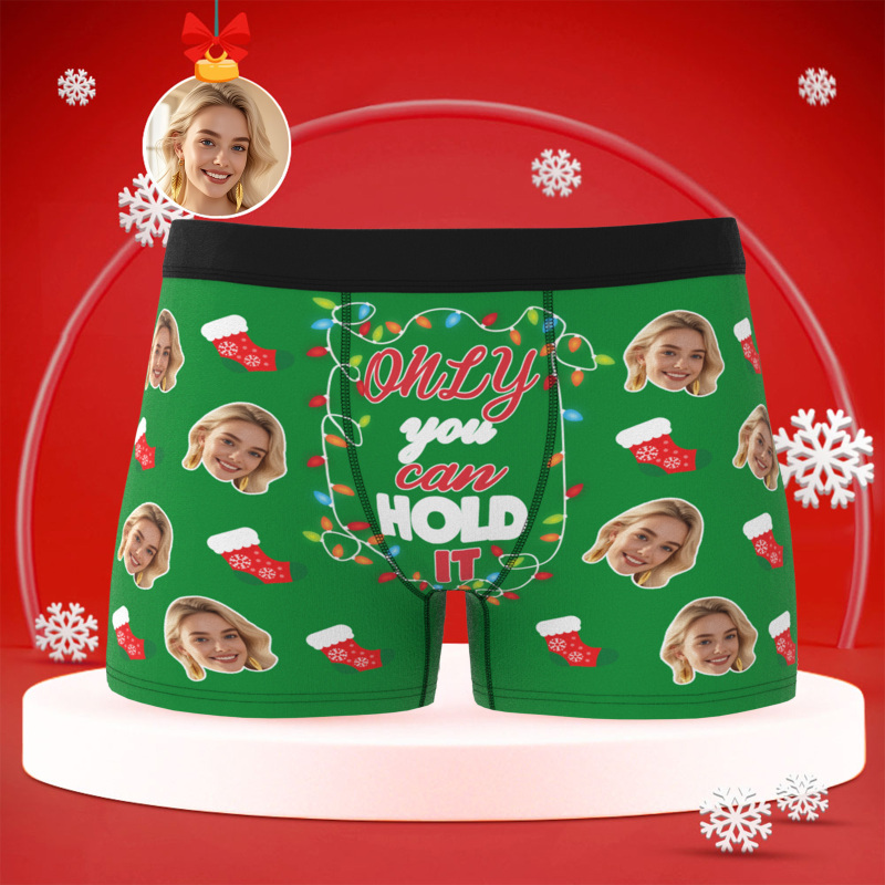 Cadeau de Noël personnalisé – Créez une surprise de Noël hilarante et romantique en imprimant le visage, le nom ou un message de votre partenaire sur ce boxer festif.