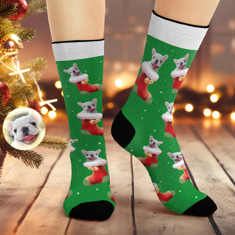 Chaussettes De Noël Respirantes Vertes Personnalisées, Chaussettes Souples Avec Photo De Chien, Cadeaux Pour Amoureux Des Animaux De Compagnie