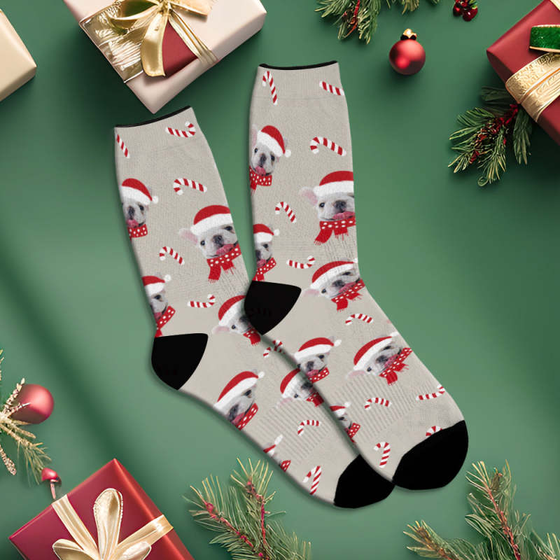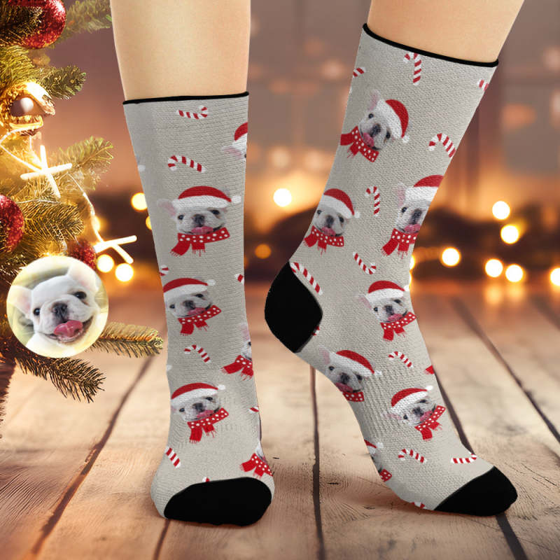 Chaussettes Respirantes Grises De Noël Personnalisées, Chaussettes Souples Avec Photo De Chien, Cadeaux Pour Amoureux Des Animaux De Compagnie