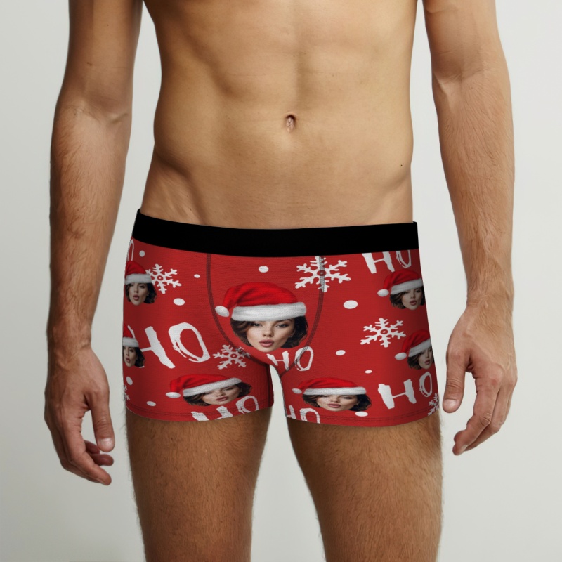 Cadeau de Noël personnalisé – Créez une surprise de Noël hilarante et romantique en imprimant le visage, le nom ou un message de votre partenaire sur ce boxer festif.
