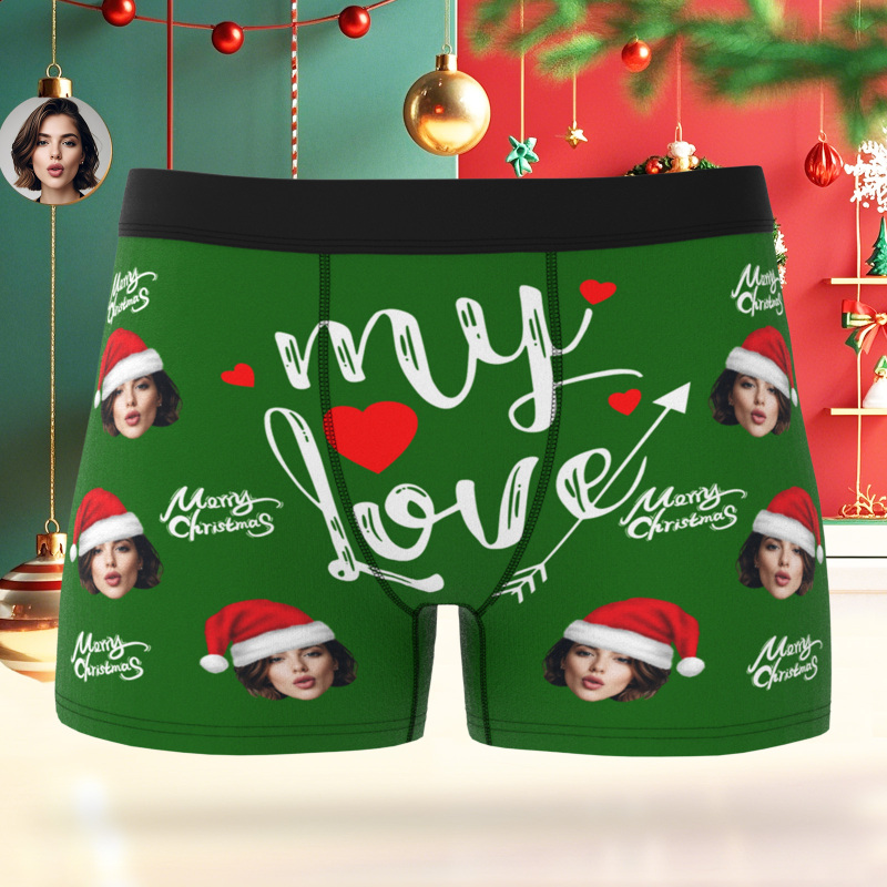 Boxers Pour Homme Personnalisés Pour Noël Avec Le Logo « Mon Amour » Et Le Visage Du Personnage - Cadeau Idéal Pour Petit Ami, Mari Ou Couple
