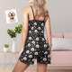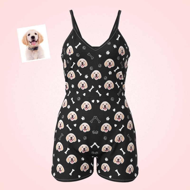 Personnalisé Chien Visage Sling Jumpsuit Shorts Personnalisé Photo Empreinte Sans Manches Pyjama Pour Les Femmes