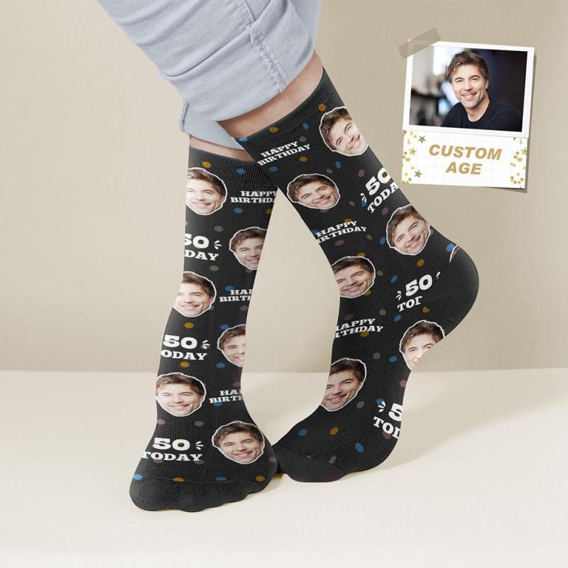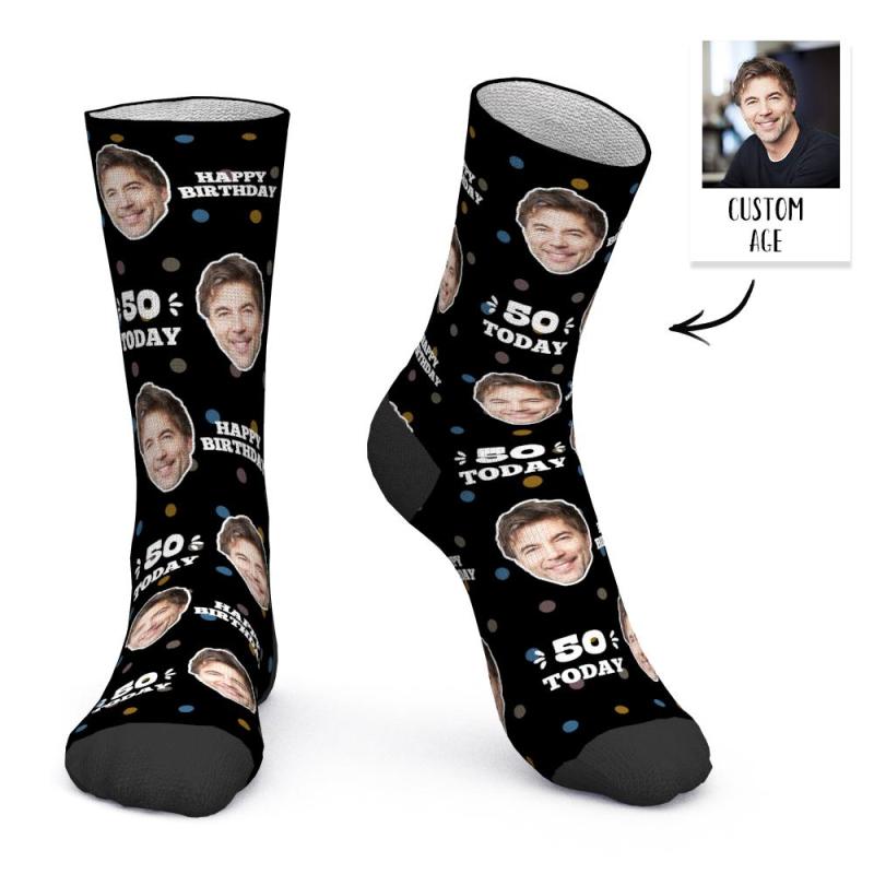 Chaussettes Personnalisées Pour Le Visage Et L'âge Chaussettes D'anniversaire Personnalisées Cadeau D'anniversaire - Aujourd'hui