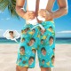 Short De Plage Personnalisé Avec Visage Et Numéro, Short De Plage Multicolore À La Noix De Coco Et À L'ananas
