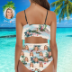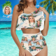 Bikini D'Été À Volants Pour Femmes Bikini Personnalisé Visage Maillots De Bain Taille Haute Cadeau Pour Elle - Motif De Paysage