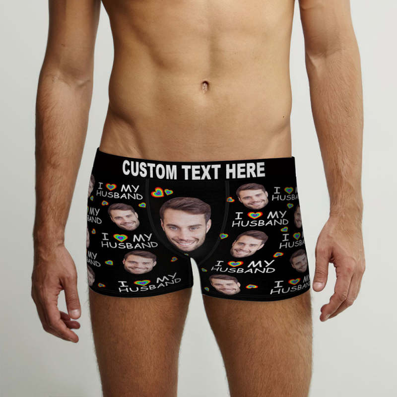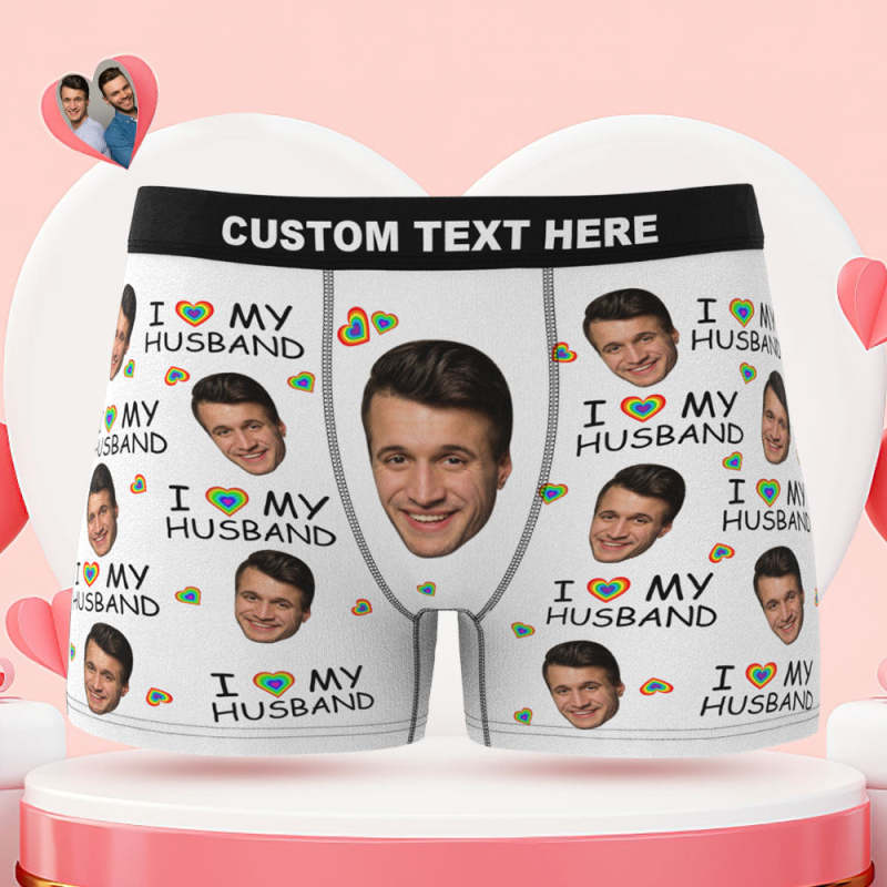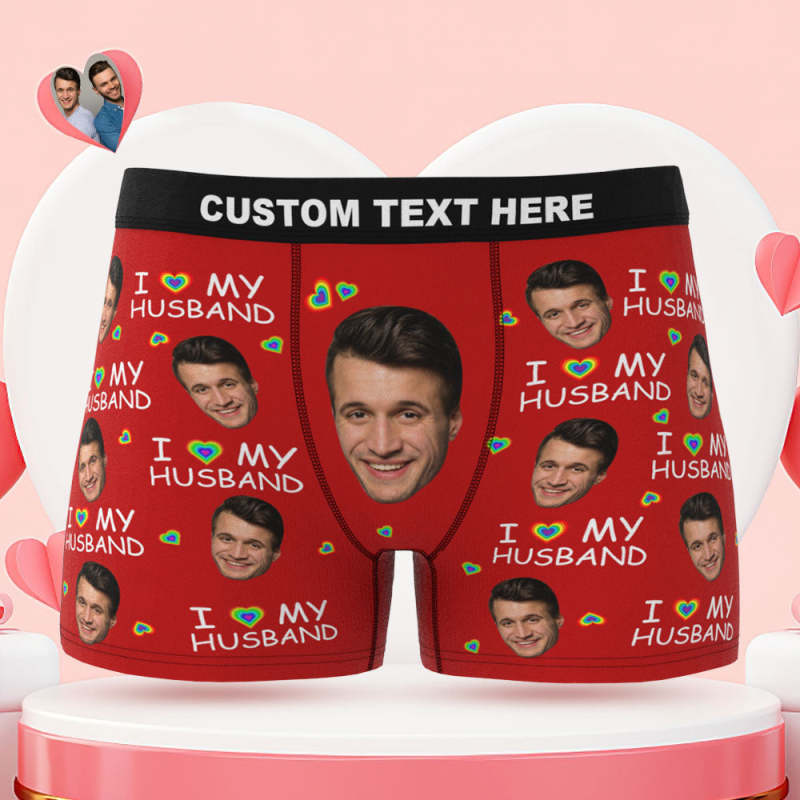 Culotte Boxer Visage Personnalisée J'Aime Mon Mari Cadeau Lgbt Coquin Personnalisé