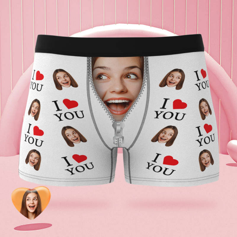 Boxer Visage Personnalisé Je T'Aime Cadeau Saint Valentin Coquin Personnalisé Pour Lui