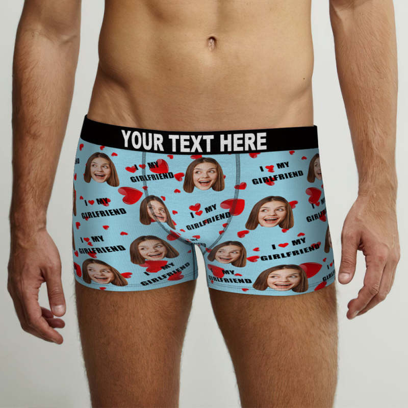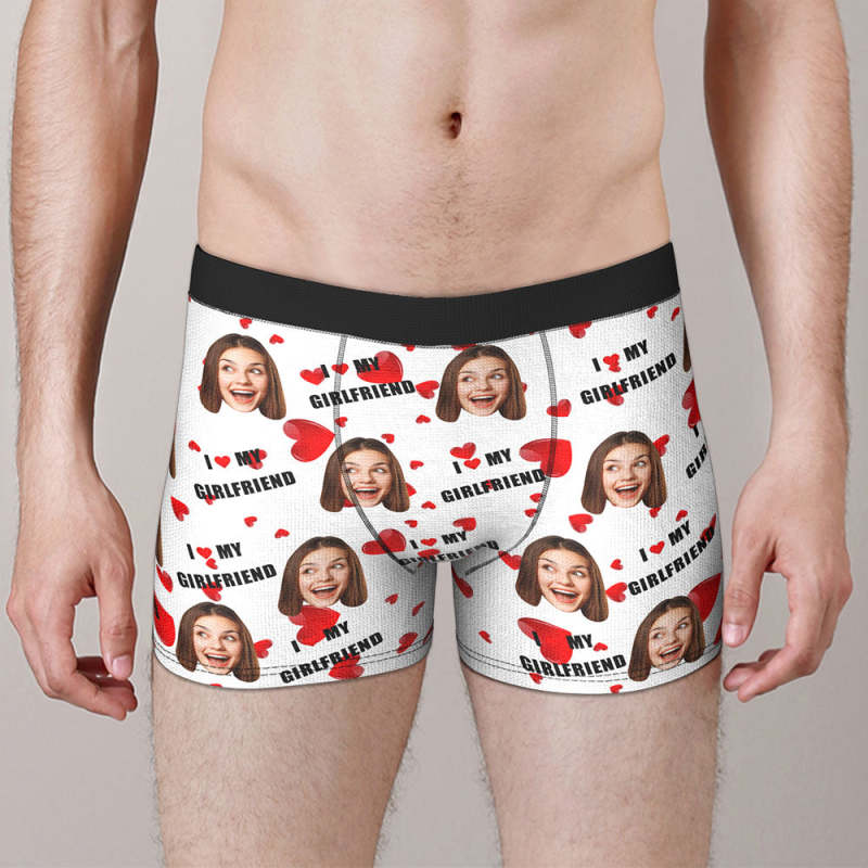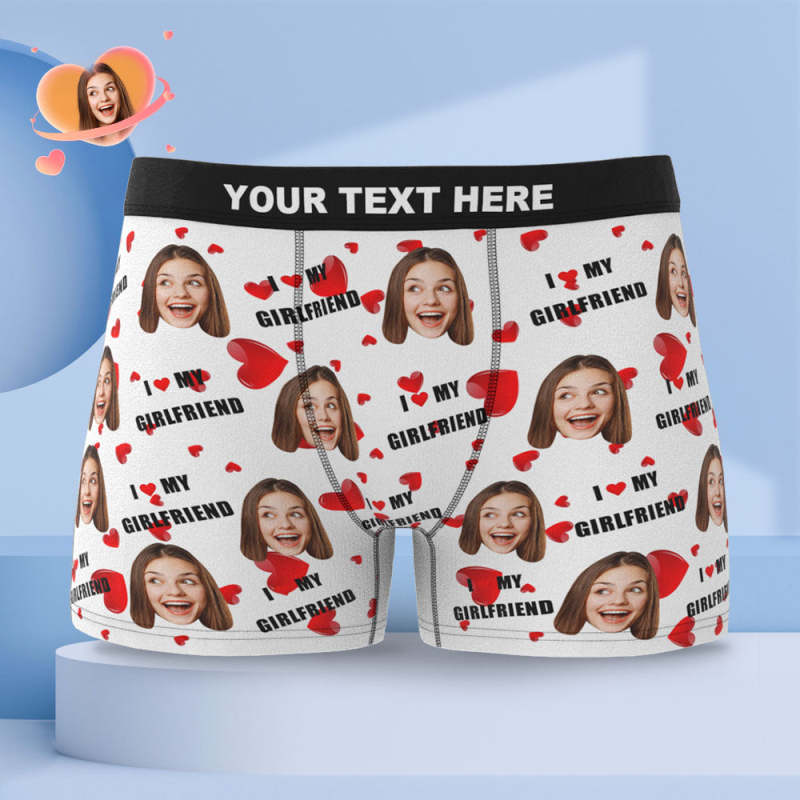 Personnalisation Des Sous - Vêtements De Boxe Faciale Personnalisation Des Shorts De Boxe Pour Hommes Cadeaux Pour Hommes - J'Aime Ma Petite Amie