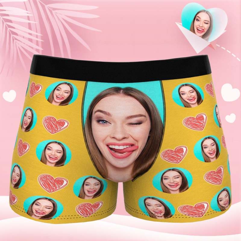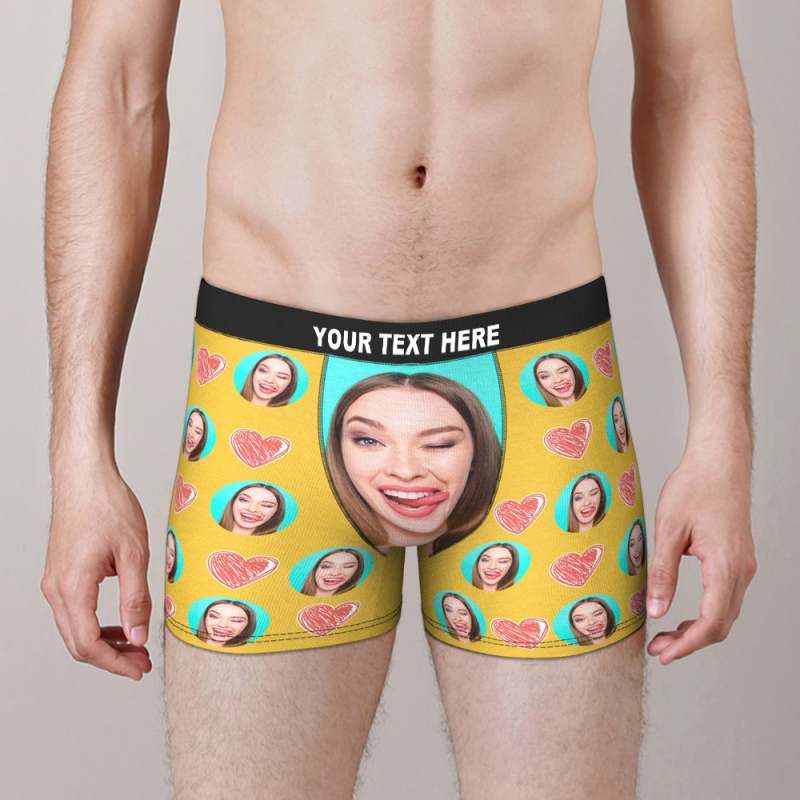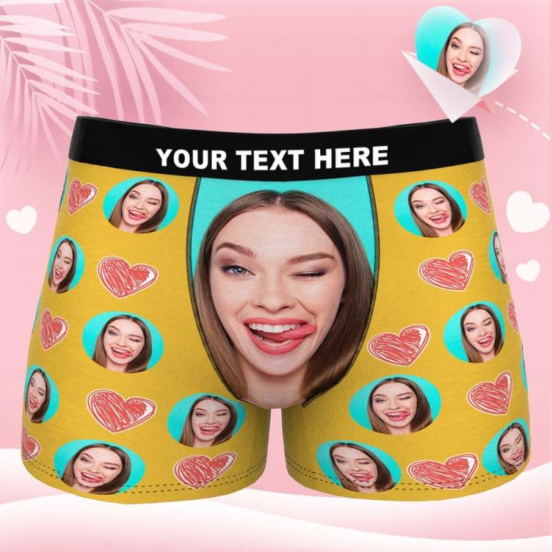 visage personnalisé boxer visage drôle de petite amie sous-vêtement jaune Saint Valentin cadeau pour lui