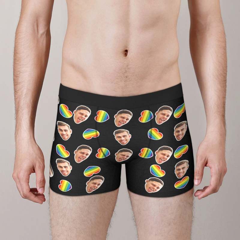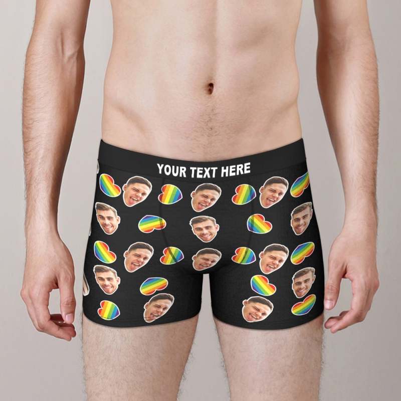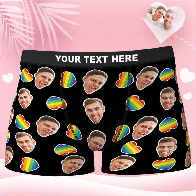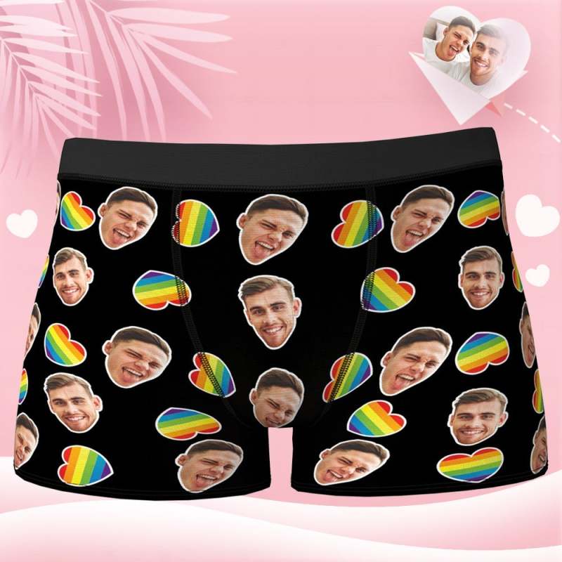 boxer visage personnalisé visage petit ami personnalisé Cadeau Saint Valentin homme - coeur arc-en-ciel