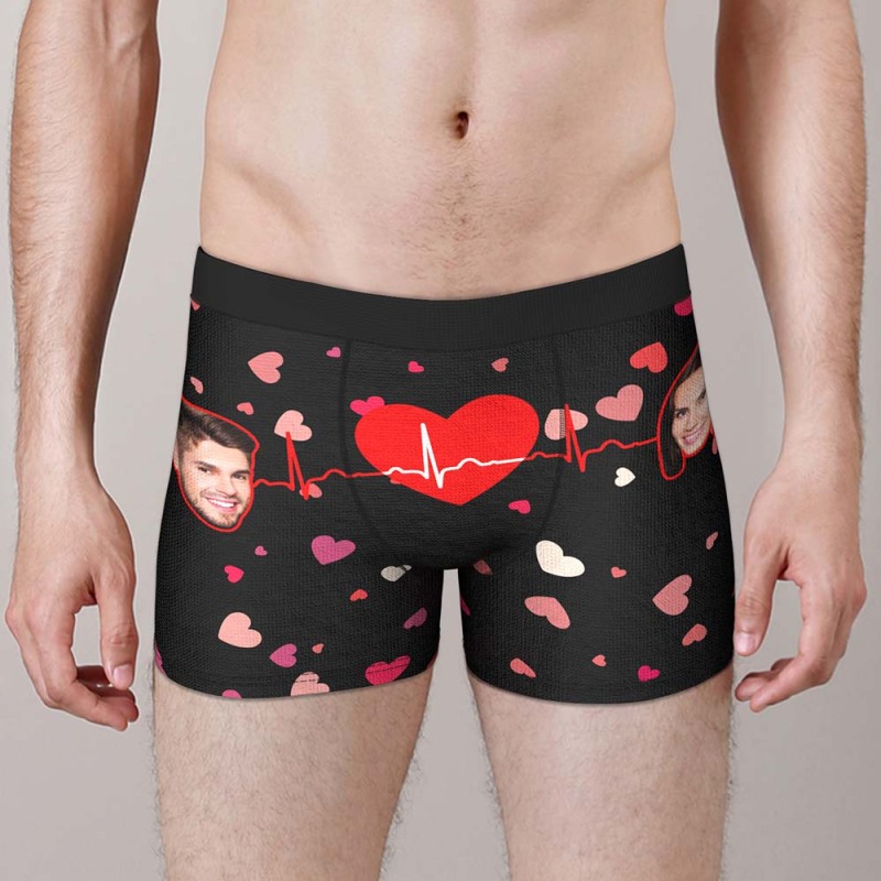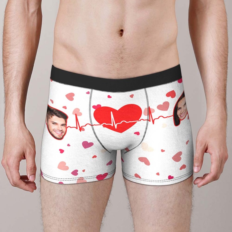 Masque Personnalisé Avec Photos De Couple Personnalisées Symbole Télépathique De L'Amour Shorts Pour Hommes Cadeaux De Noël