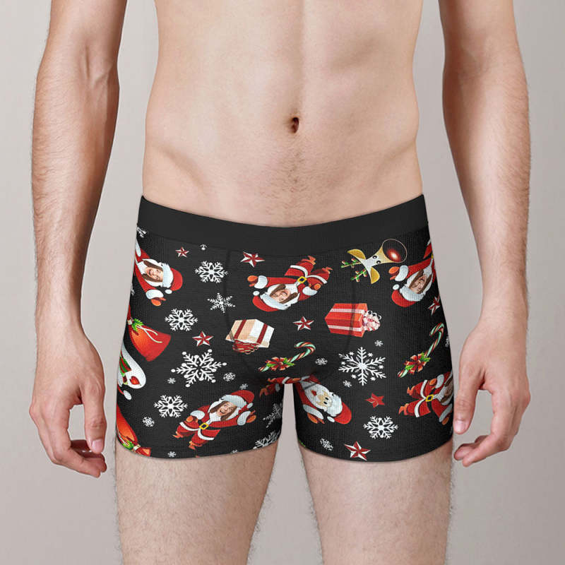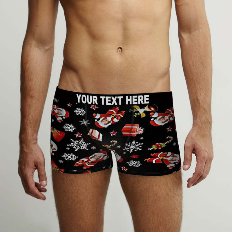 Shorts De Boîte De Taille Personnalisés Shorts Pour Hommes Personnalisés Avec Photo Père Noël Bonhomme De Neige Cadeau De Noël
