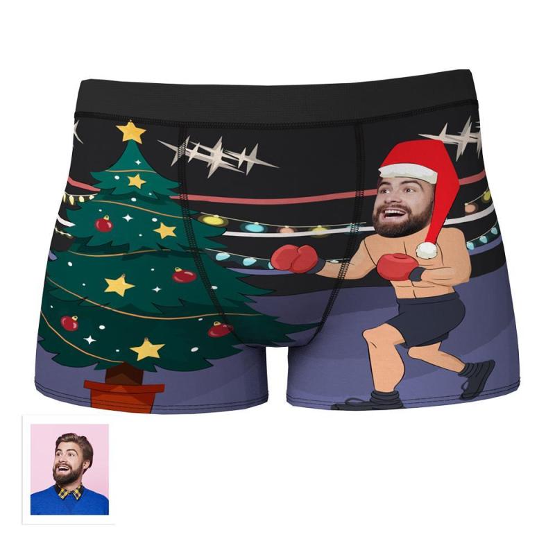 Cadeau de Noël personnalisé Visage drôle sur le corps Boxers pour hommes - Arbre de Noël