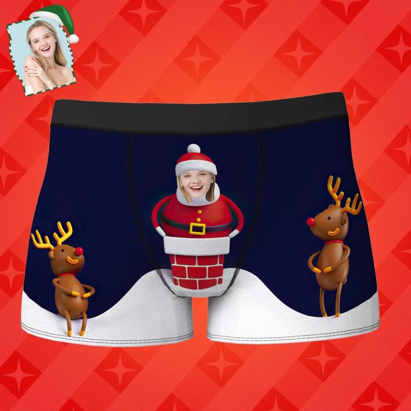 Cadeau de Noël de sous-vêtements photo Santa Face Boxers pour hommes