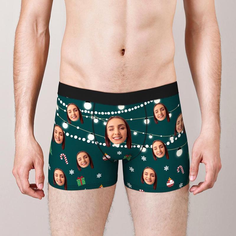 Boxers de visage personnalisés Cadeau de Noël de sous-vêtements photo personnalisés pour les hommes - Lumières de Noël
