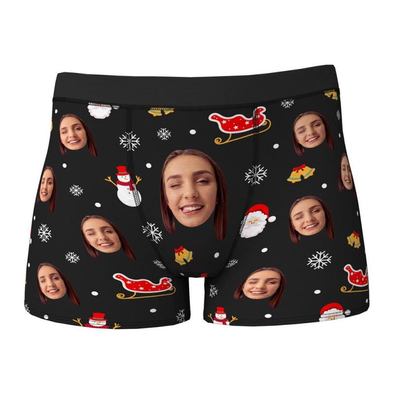 Boxers visage personnalisés Shorts père Noël et traîneau sous-vêtements photo personnalisés cadeau de Noël pour hommes