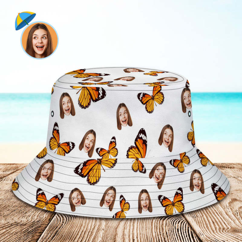 Personnaliser Le Visage Chapeau De Seau Unisexe Photos Personnalisées Chapeau D'Été Papillon Randonnée Chapeau De Plage Cadeau D'Amant