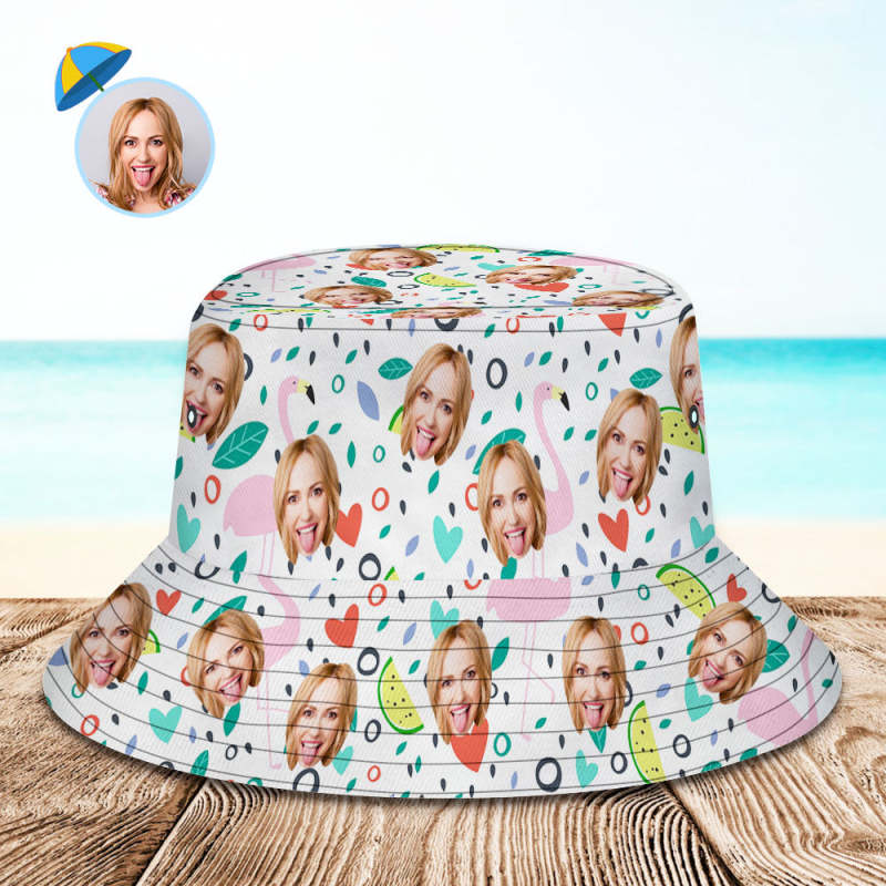 Personnaliser Le Visage Chapeau De Seau Unisexe Photos Personnalisées Chapeau D'Été Flamingo Modèle De Randonnée Chapeau De Plage Cadeau D'Amant