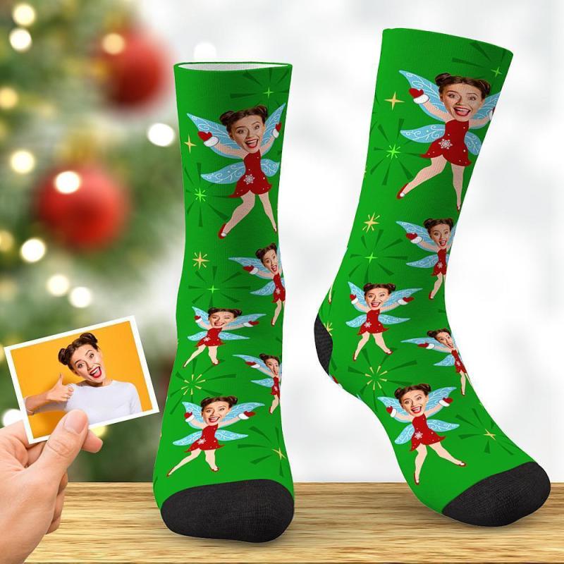 Chaussettes Elfes Avec Photo Personnalisée, Cadeau De Noël Avec Ailes