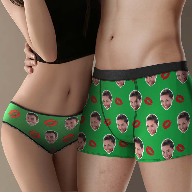 Visage Personnalisé Couple Sous-vêtements Assortis Rouge à Lèvres Personnalisé Coloré Dr?le Cadeau De Sous-vêtements Pour Les Amoureux