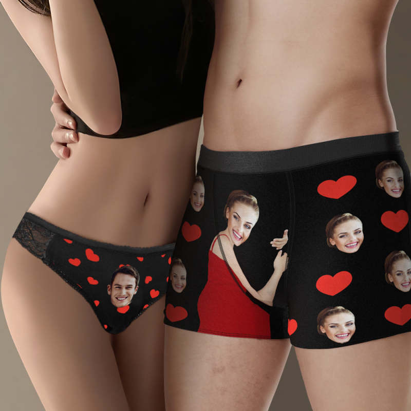 Couples De Visage Personnalisés Sous-vêtements Assortis Amour De Coeur Cadeau De La Saint-valentin Pour Les Amoureux