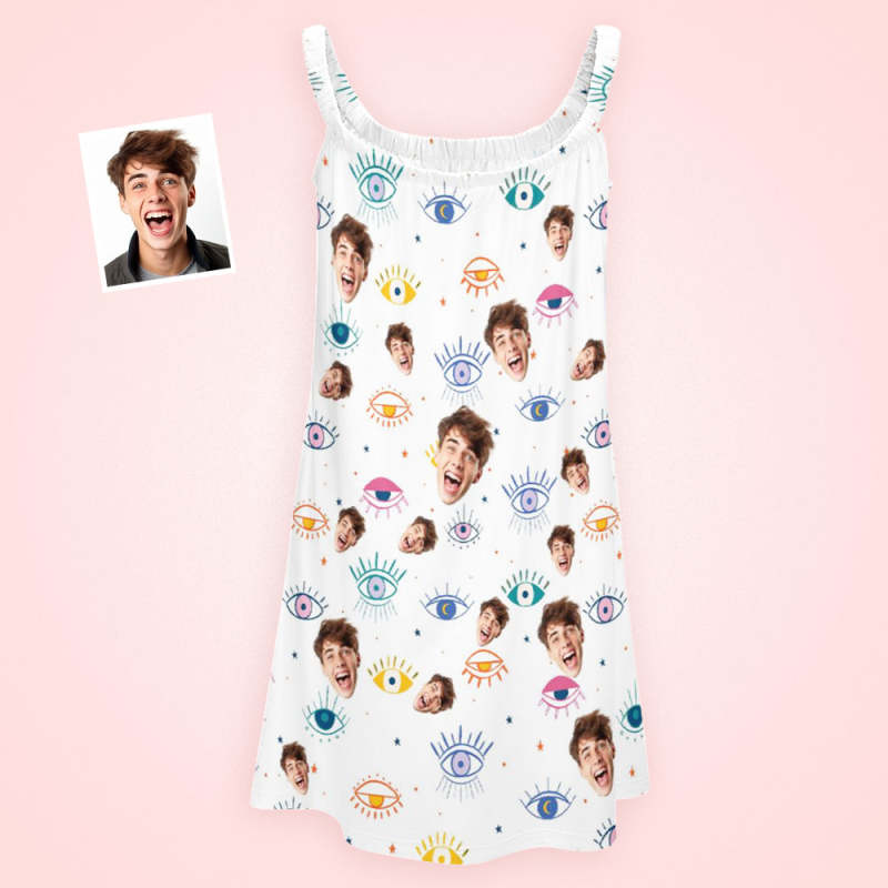 Visage Personnalisé Robe De Nuit De Jour Photo Personnalisée Femmes Longue Chemise De Nuit Yeux Drôles