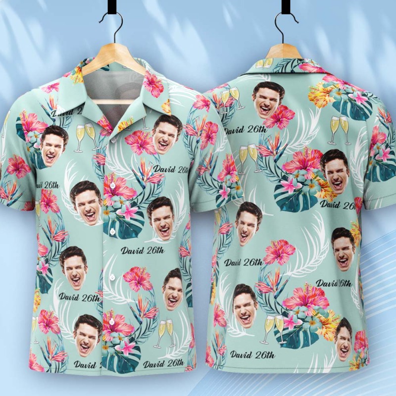 Chemise Hawaïenne Avec Visage Personnalisé, Texte D'anniversaire Et Photo, Chemise Hawaïenne David 26e Anniversaire