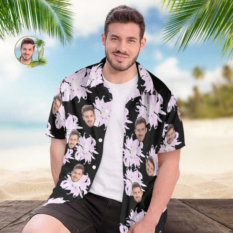 Chemise Hawaïenne Ou Short De Plage Personnalisé Avec Visage Personnalisé, Tenues Assorties, Photo Personnalisée Pour Hommes, Imprimé Floral Aléatoire, Tenue Hawaïenne, Cadeau De Fête De Vacances