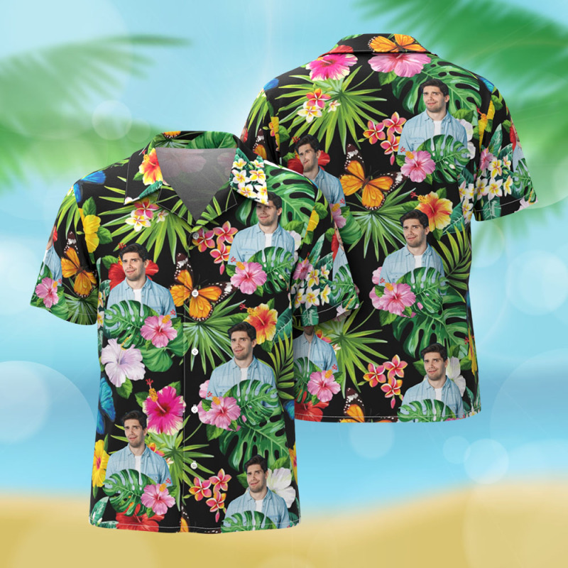 Insérez votre photo sur une chemise hawaïenne personnalisée.