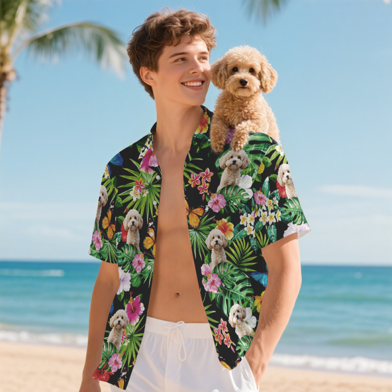 Chemise Hawaïenne Personnalisée Avec Photo De Chien Et Chat Pour Voyage