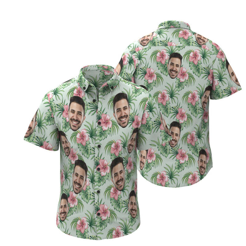 Chemise Hawaïenne De Visage Personnalisé Personnalisé Hommes Photo Tropical Aloha Chemise Cadeau De Fête De Vacances