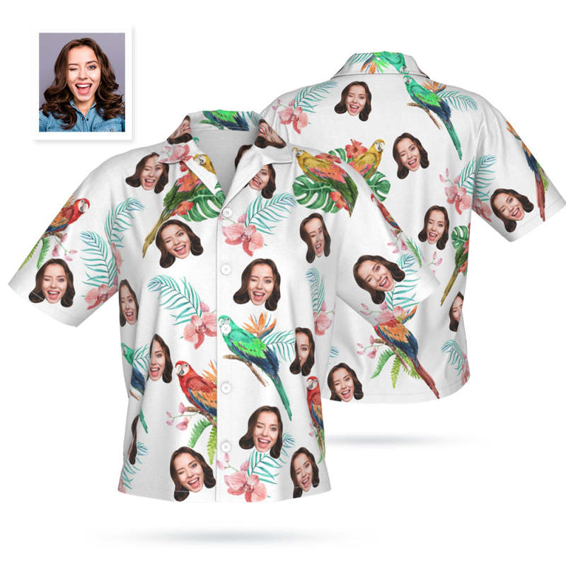 Personnaliser le visage chemise hawaïenne photos personnalisées chemise d'été pour femmes - perroquet