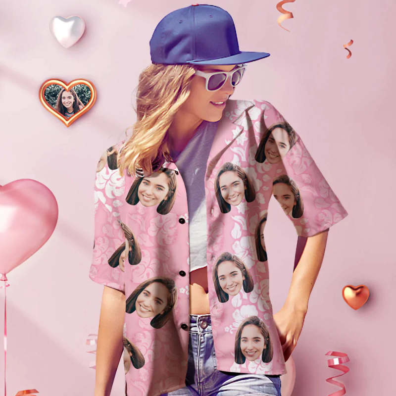 Visage Personnalisé Hawaiian Shirt Personnalité Femme Chemise Réaliste Valentine Cadeau Pour Elle Honolulu Leis