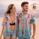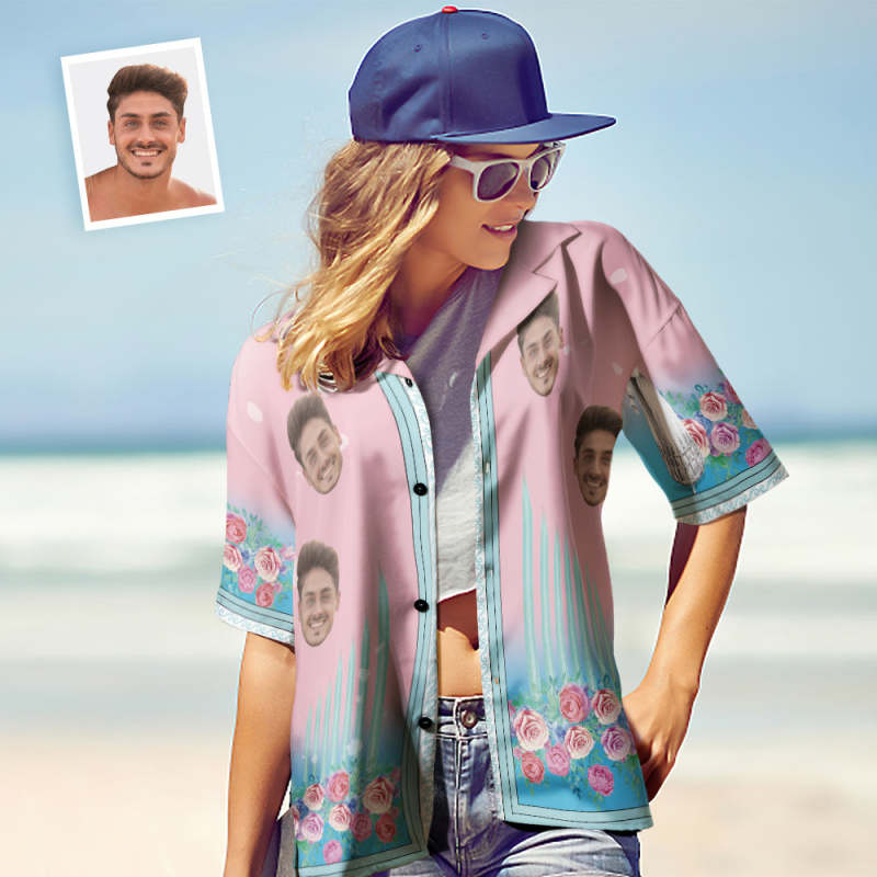 Chemises Hawaïennes Personnalisées Pour Le Visage Couple Personnalisé Chemises De Plage De Vacances Roses Florales Cadeau De La Saint-valentin