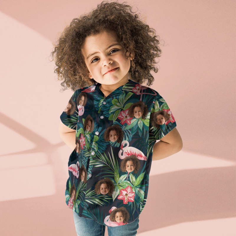 Robe Longue De Fleur De Flamant Rose De Style Hawaïen De Visage Personnalisé Et Famille De Chemise Assortie