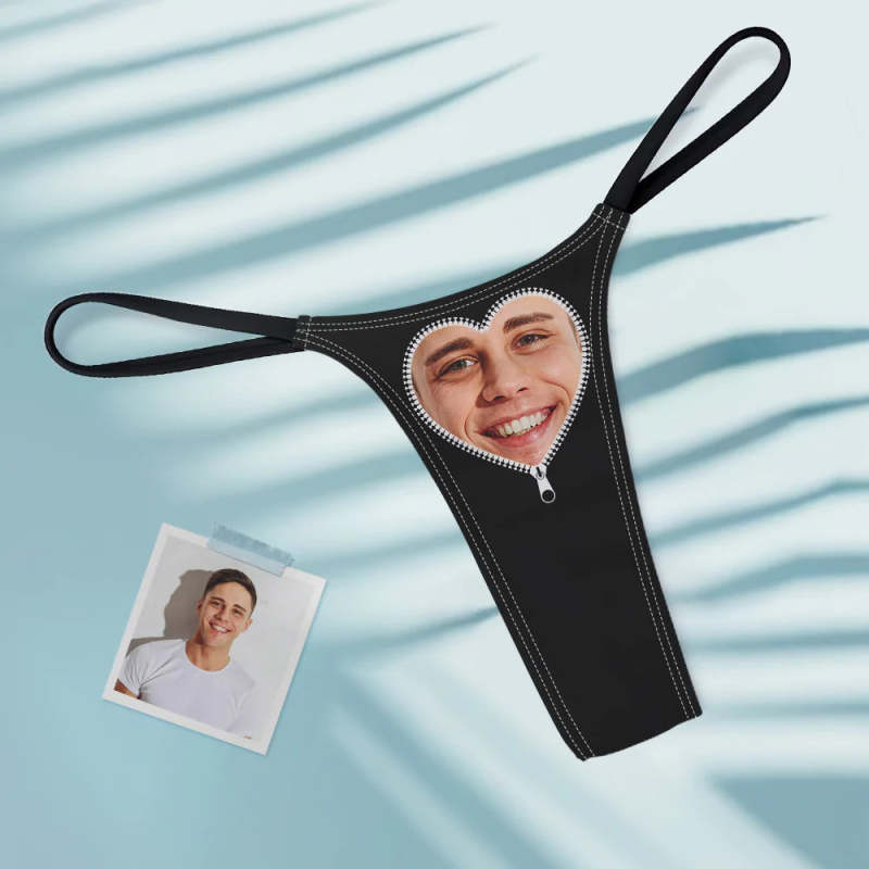 Cadeau personnalisé de string pour femme avec fermeture à glissière en forme de cœur pour elle