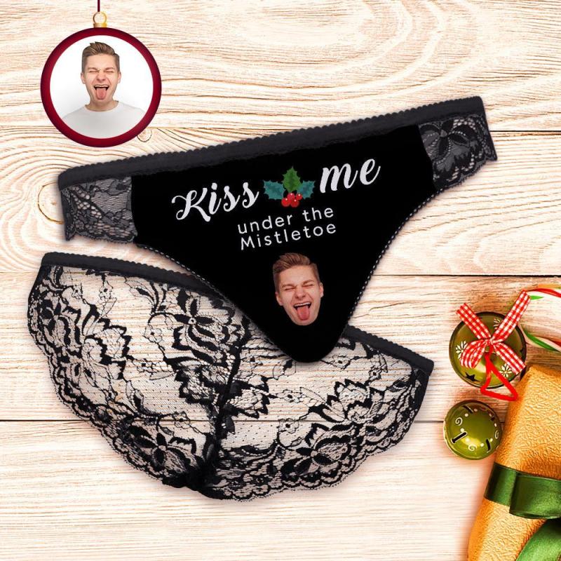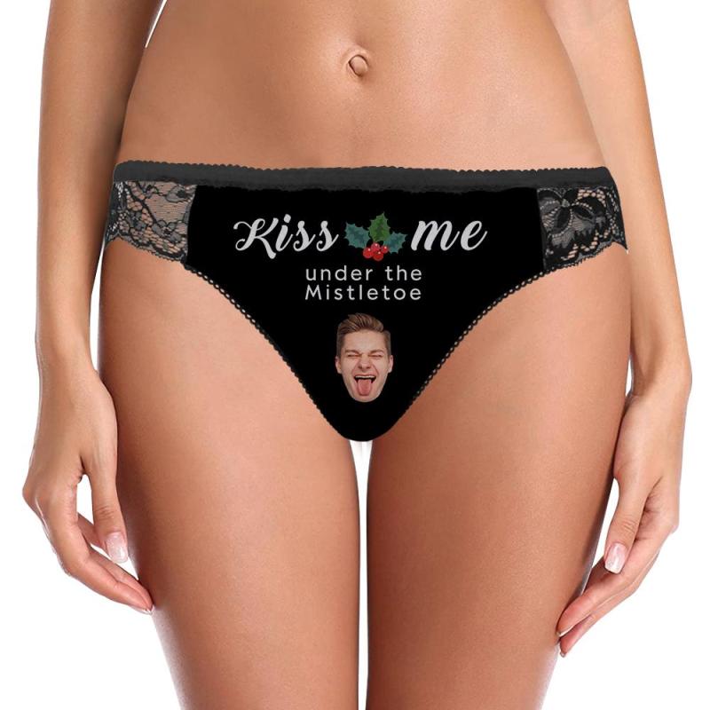Culotte en dentelle Personnalisée pour femmes, culotte sexy, embrasse-moi sous le gui
