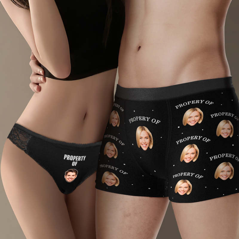 Sous-vêtements Personnalisés Assortis Au Visage Pour Les Couples Propriété De Moi Cadeau De La Saint-valentin Pour Les Amoureux