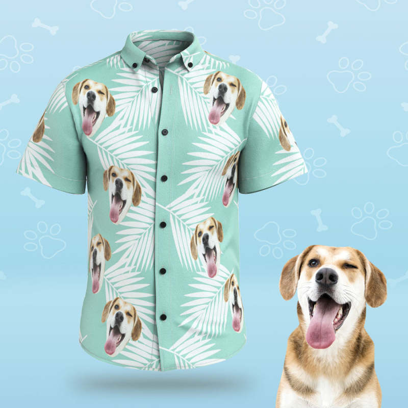 Chemise Hawaïenne Personnalisée Pour Hommes Face Mignon Visage De Chien Personnalisé Pour Les Amateurs D'Animaux De Compagnie - Bleu
