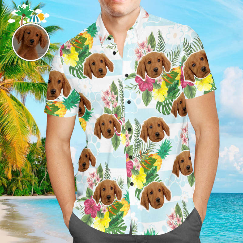 Visage personnalisé hommes chemises hawaïennes chemises hawaïennes personnalisées pour hommes empreinte de patte de chien