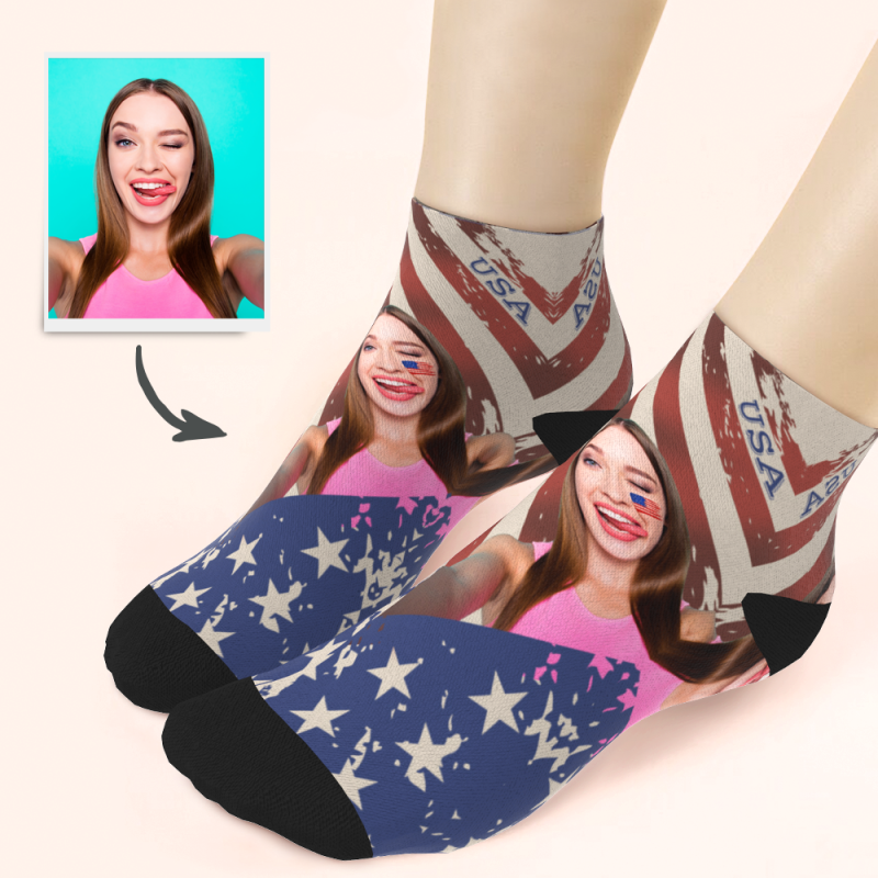 Chaussettes de Cheville Visage Personnalisées Drapeau National